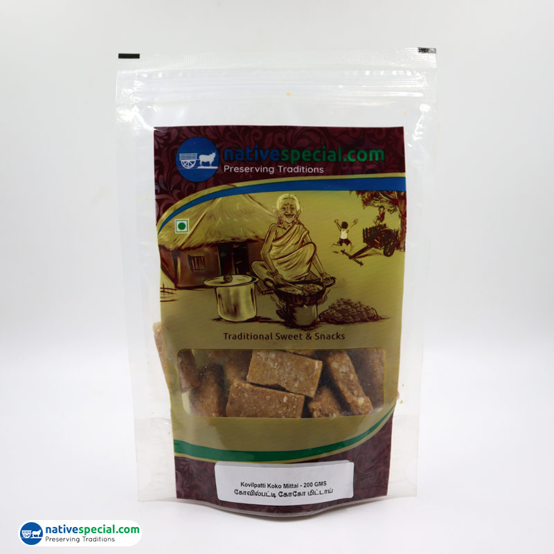 One of the famous and healthy snacks in Tamilnadu, India. Koko Mittai is also known as Manila Burfi. Though Koko mittai is generally available all over the place, only with Kovilpatti Koko mittai you can feel the real quality and taste.