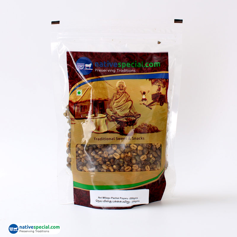 Speciality : Sprouted Ghee Pepper Fried Green Gram is a nutritious, flavorful dish made with green gram (mung beans) that are sprouted, sautéed in ghee, and seasoned with freshly ground black pepper and spices. It combines a rich, earthy taste with a hint of spiciness, offering a wholesome, protein-packed snack or side.