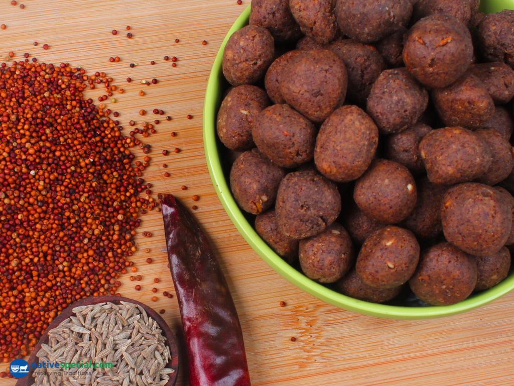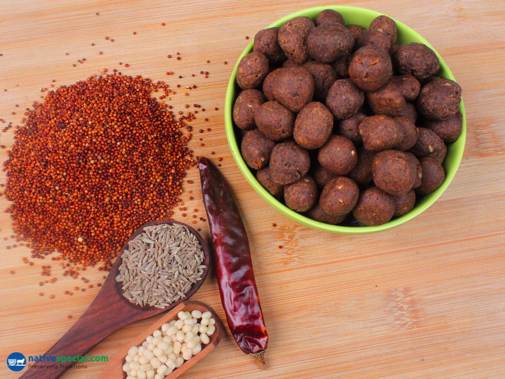 Ingredients: White sesame, Urad Dal Flour, Sprouted ragi Flour, Butter, Cumin, Red chilli, Salt, Groundnut oil