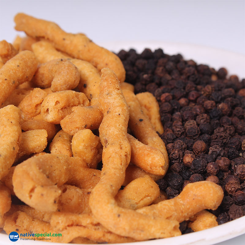 Product Speciality: Tamil Nadu’s global trade flourished with the help of pepper for many centuries and it is famously called Black gold. The Reason for the global demand can be understood better if we unwind the health benefits of Black Pepper. Tamil Nadu with its rich food culture continues to evolve more varieties with its strong knowledge base. Thus these kinds of unique snacks were emerging out of Tamil Nadu very often. The traditional snack with the combination pepper provides the most unique and spicy taste to this snack. The pepper added was half grainded or full in order to give the real hot flavor while chewing the snack. Wonderful snack for health and spice lovers.