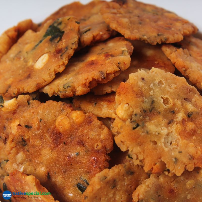 Ingredients: Rice flour, Groundnut, Cumin, Asafoetida, Chilli (Pazhutha Milagai)