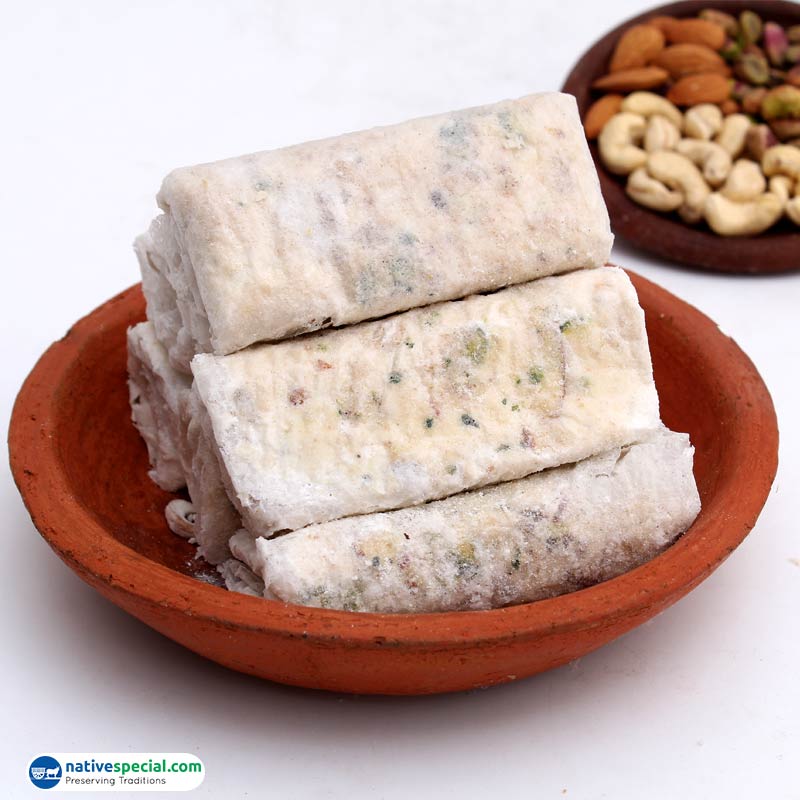 Ingredients : Rice starch, White Sugar, Broken Cashew nuts,Almonds,Pistachios