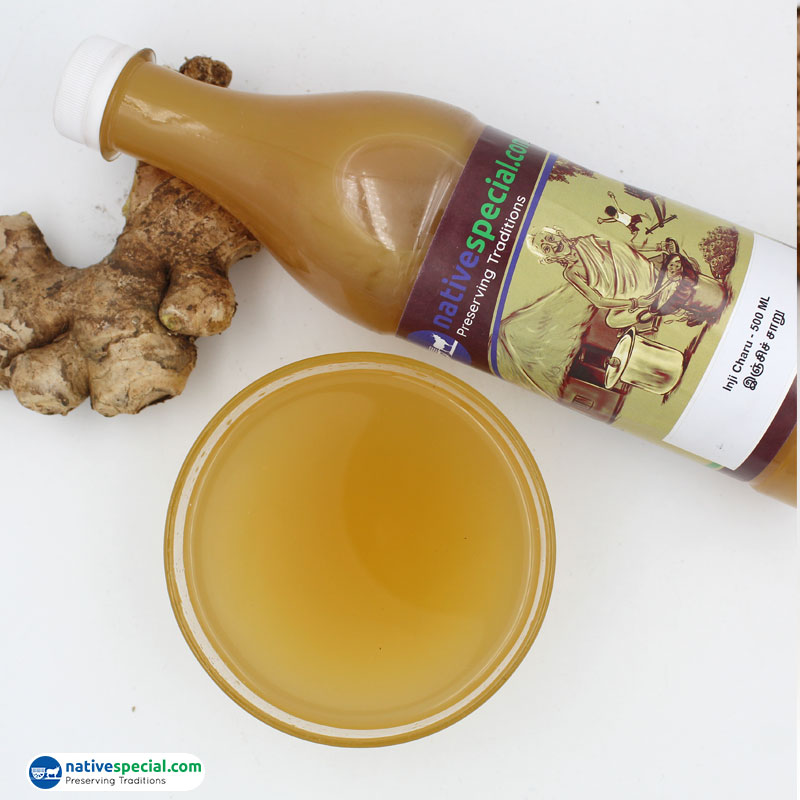 Inji (Ginger) has been widely used for medicinal purpose in Tamil Nadu. It is still part of mainstream cooking. The speciality of Ginger is its ability to control the acidic content in our body. Because of its ability to control the acidic content the cholestrol level will not be aggrevated in our body. Increase in acidic content will directly increase bad cholestrol in our body. This Inji Charu (Ginger Sarbath) is made from home grow Ginger plantations.